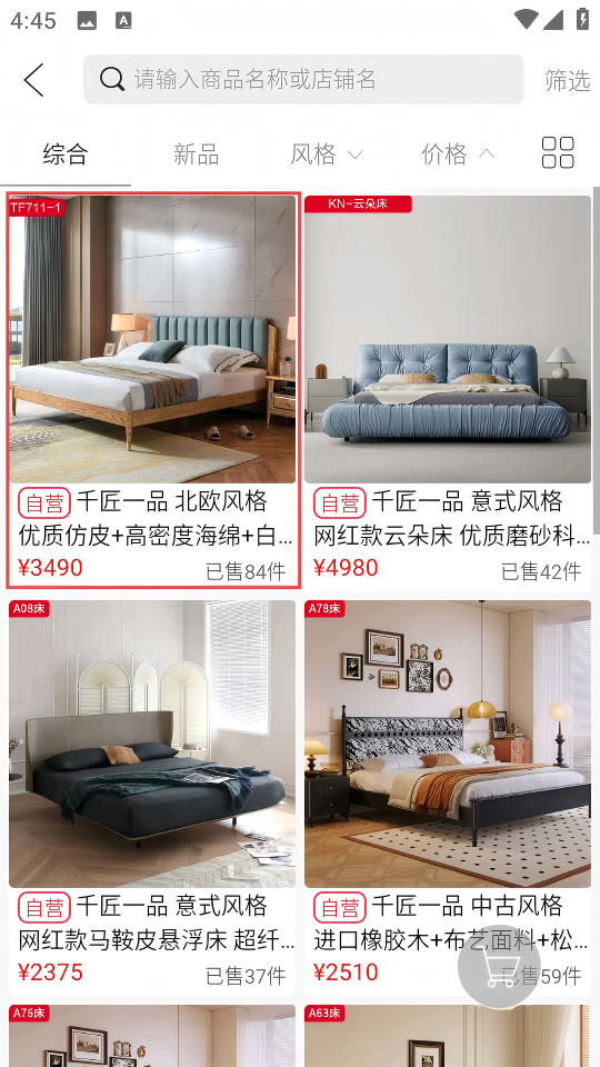 3、在卧室家具商品列表中选择【千匠一品-北欧风格】的床,进入该商品详情页面。