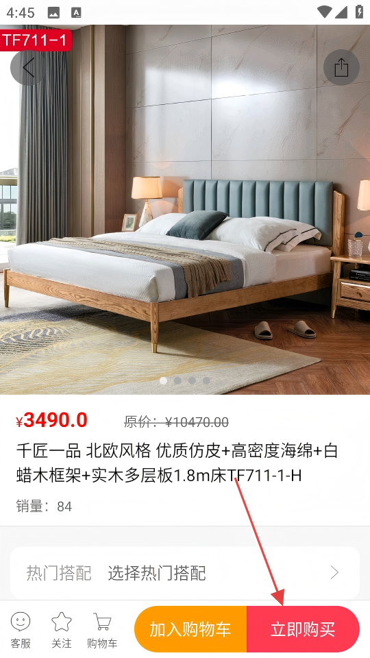 4、在商品详情页面点击【立即购买】,即可进行该北欧风格床的购买流程。