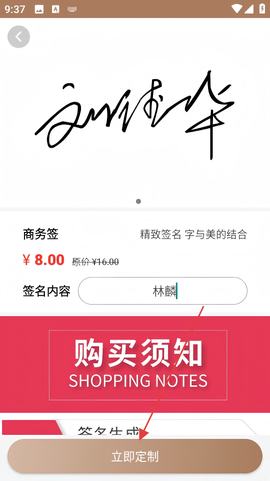 4、在签名定制界面,输入签名内容后点击【立即定制】按钮,完成签名定制操作。