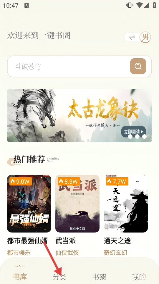 1、点击底部【分类】,进入分类页面,可查看【科幻】【玄幻】等小说分类,选择感兴趣分类找书。