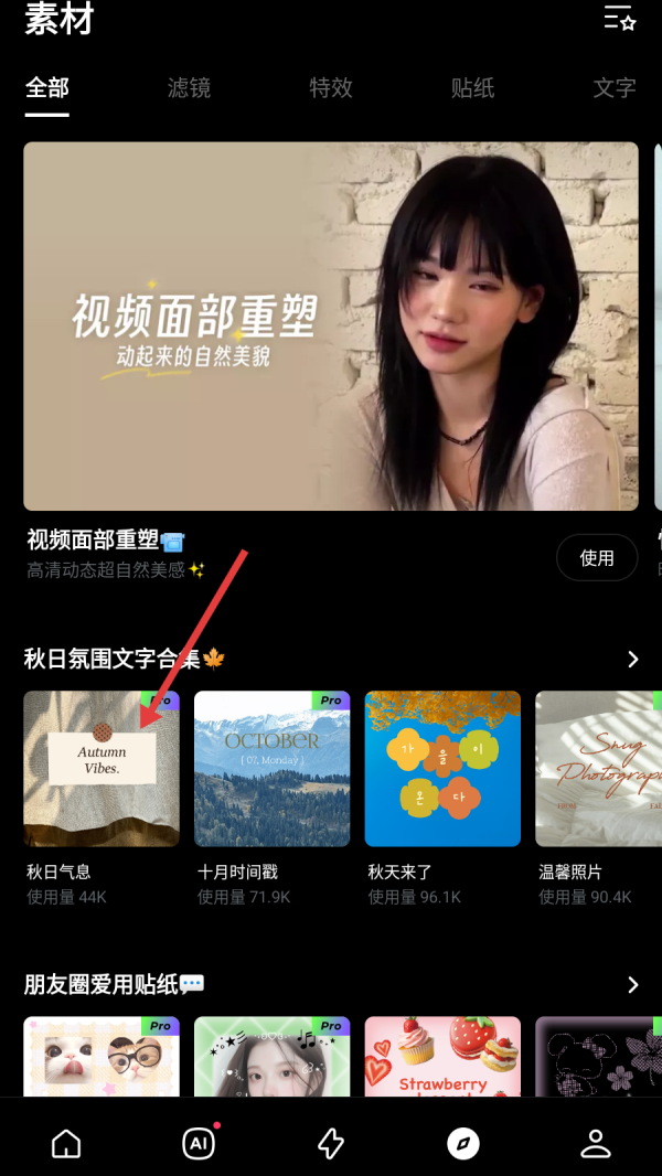 2、在素材页面,选择【秋日气息】素材,进入素材详情页面。