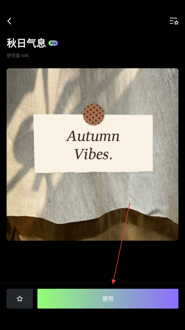 3、在素材详情页面,点击【使用】,进入素材应用页面。