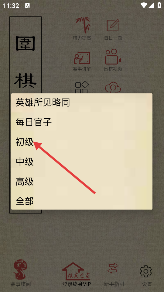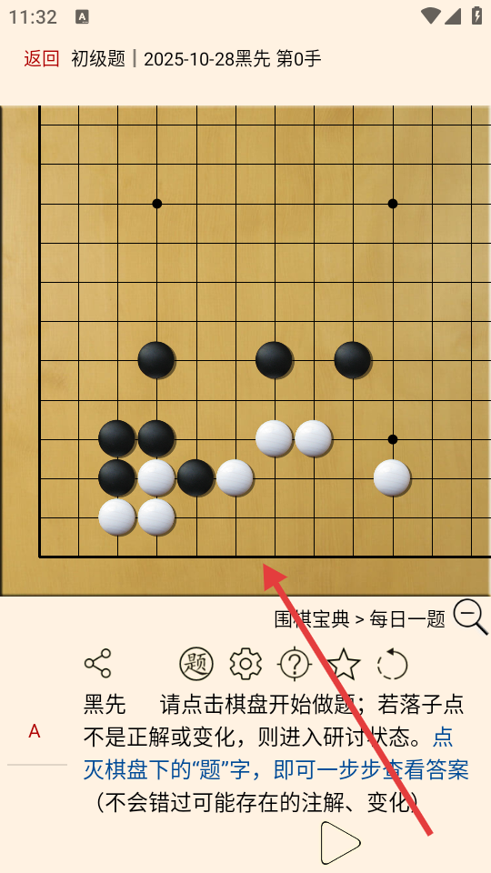 3、在难度选择菜单中点击【初级】,可进入初级围棋题目页面。