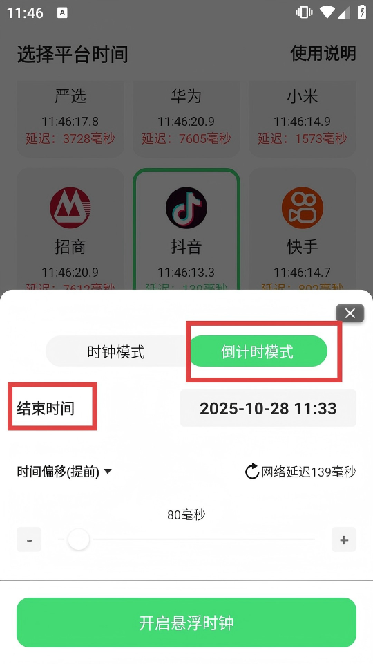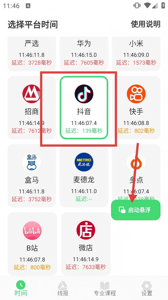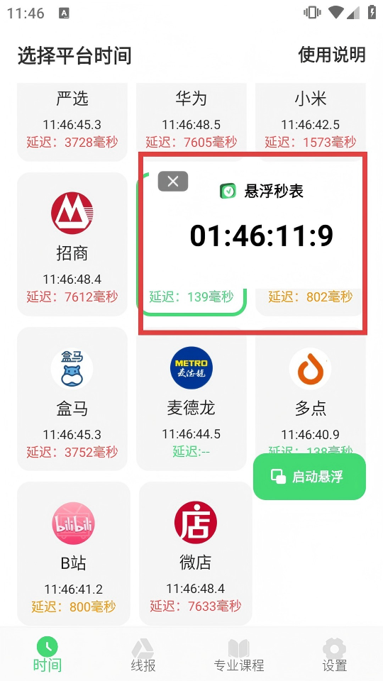 1、选择目标平台时间,点击【启动悬浮】,进入悬浮模式设置页。