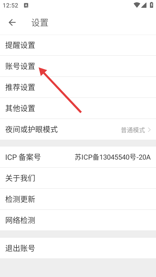 2、在设置页面点击【账号设置】选项,可进入账号设置页面。