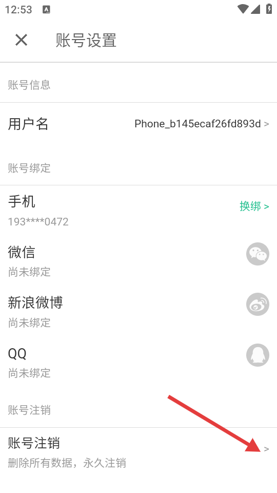 3、在账号设置页面点击【账号注销】选项,可进入账号注销页面。
