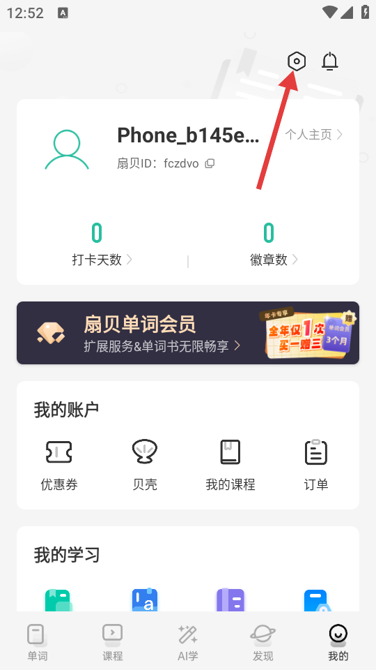 1、在“我的”页面点击右上角设置图标,可进入设置页面。