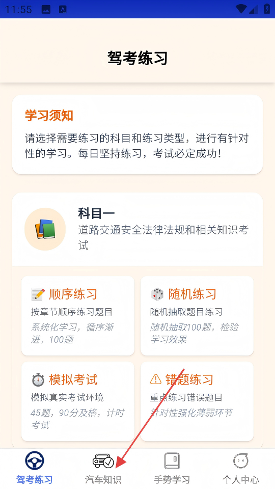 4、题库资源丰富且题目不重复,覆盖驾考重点难点,同时兼顾汽车知识与手势学习,为用户通过驾考提供全面支持。