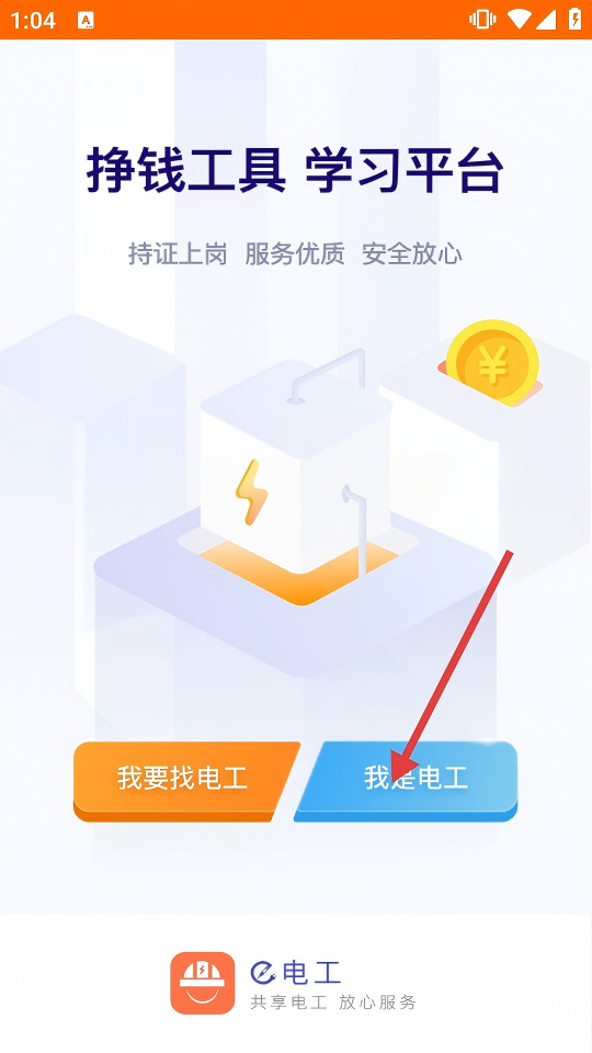 2、在主界面点击【我是电工】,进入手机快捷登录页面。