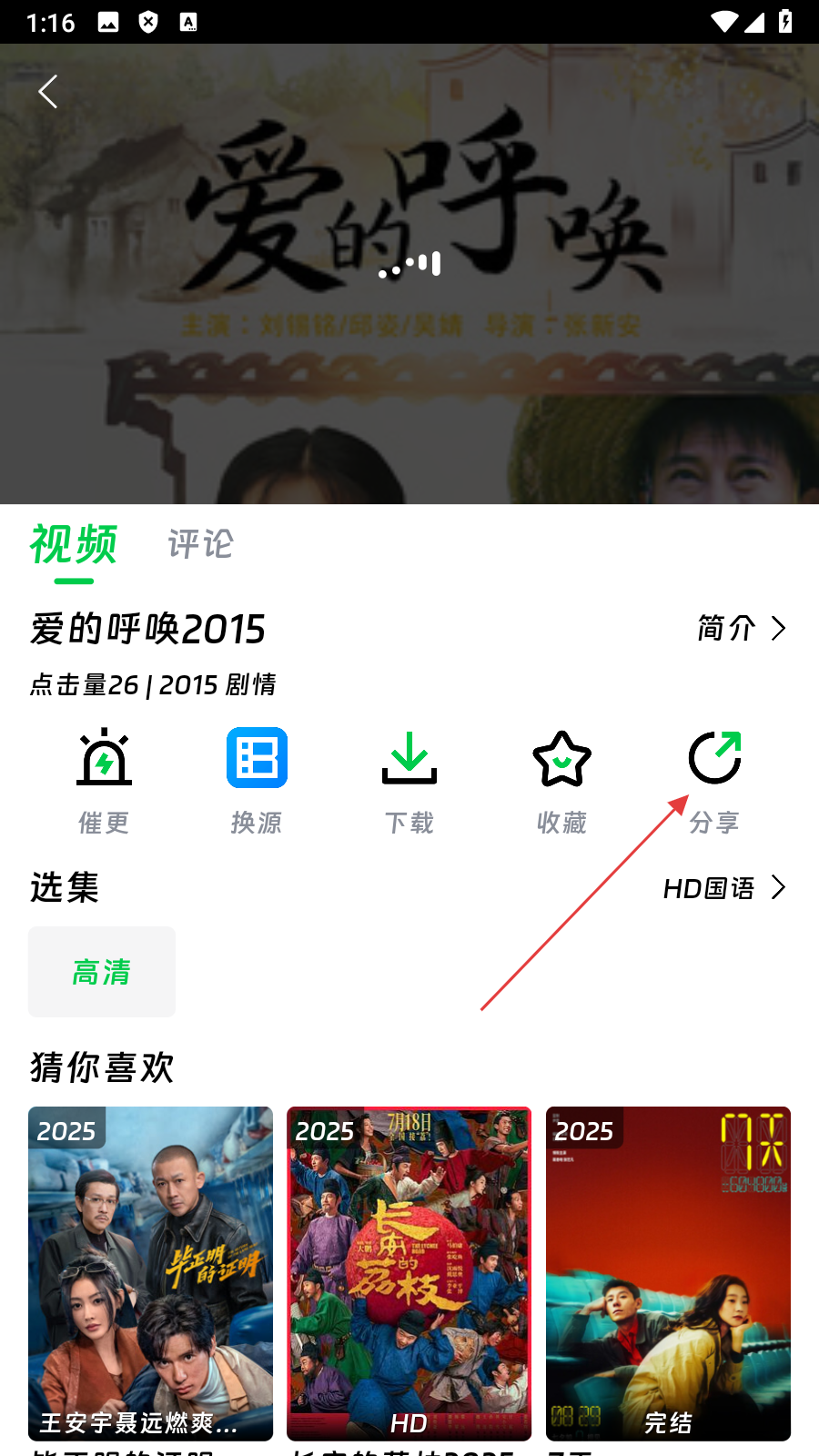 2、在影片播放页面,点击【分享】,进入分享选择页面。