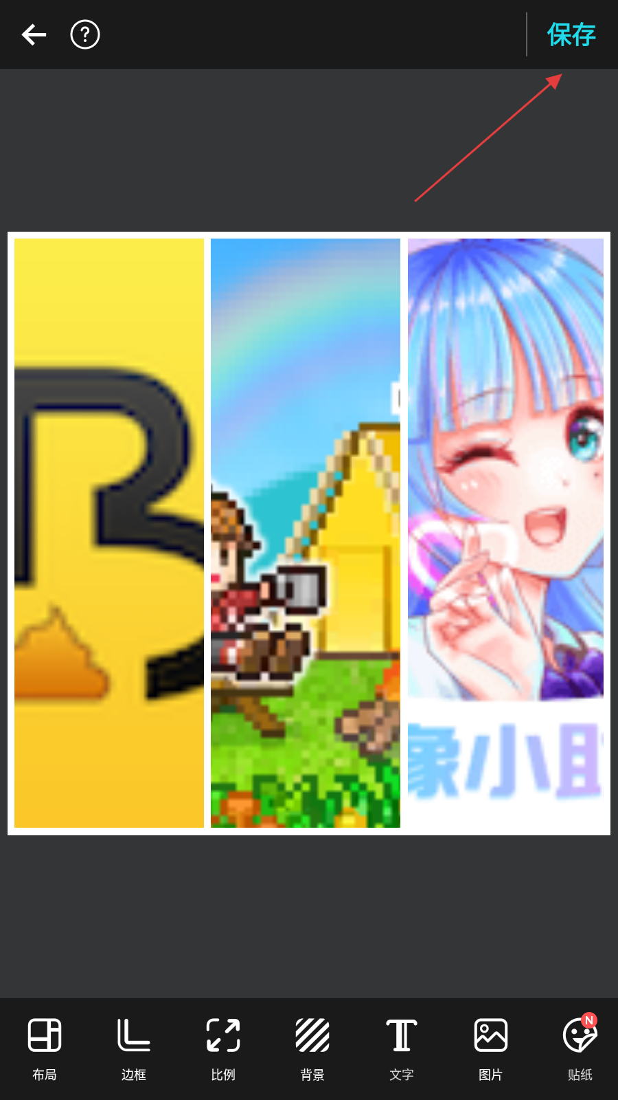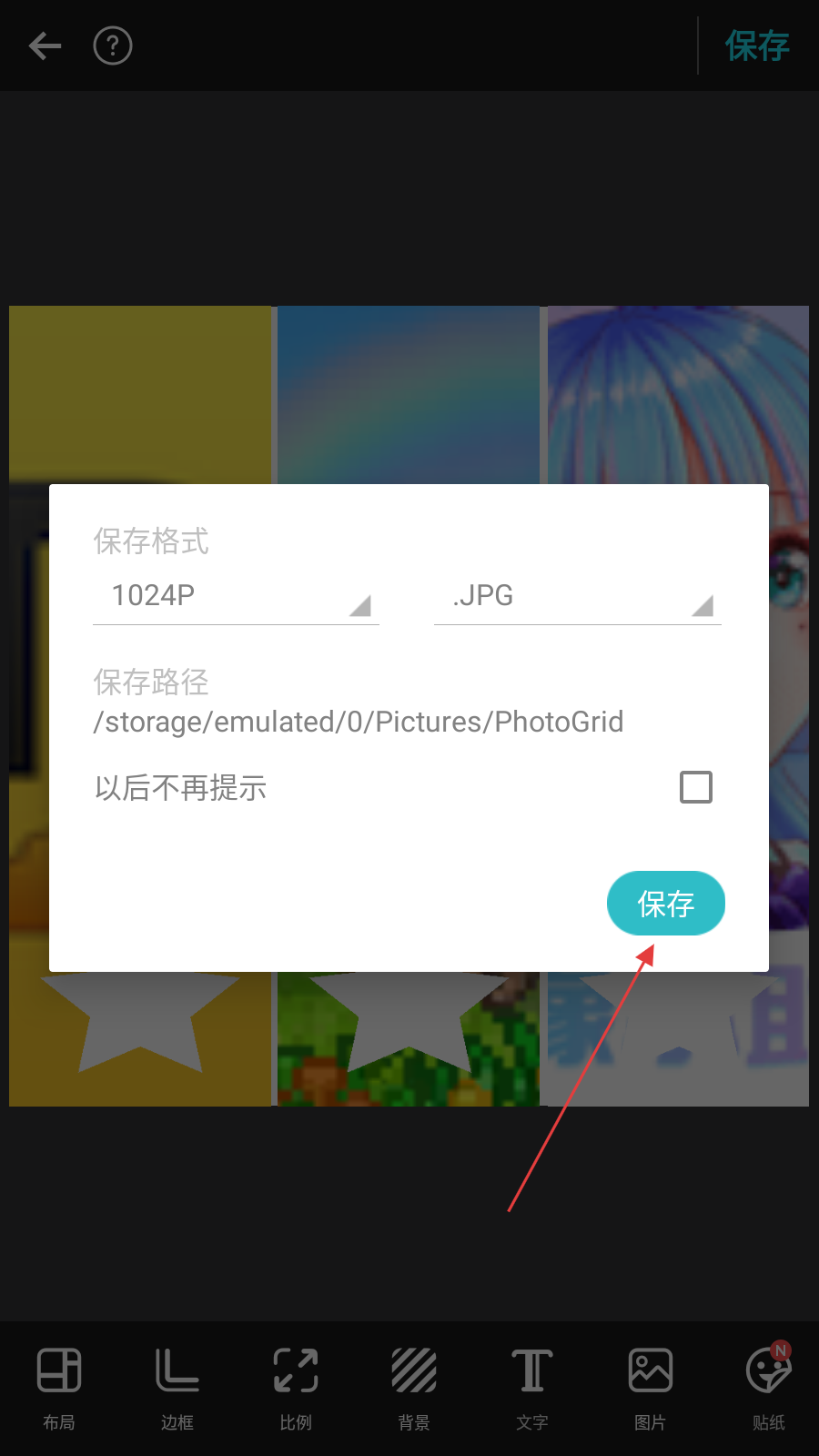 3、在图片拼接编辑页面,点击【保存】,进入保存设置页面。