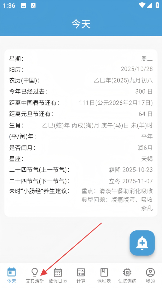 时间规划管理大师是一款聚焦时间管理与生活辅助的智能工具,通过科学方法与实用功能帮助用户高效规划时间、平衡工作生活。它整合中国专属放假日历,精准标注放假补班、高速免费等信息,支持时间计算、备忘提醒、年龄查询等基础功能,更创新融入艾宾浩斯记忆法优化复习计划,提供二十四节气养生建议与生活知识科普,搭配目标拆解功能将长期目标转化为每日任务。