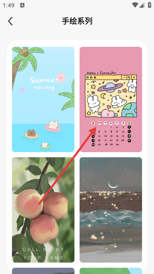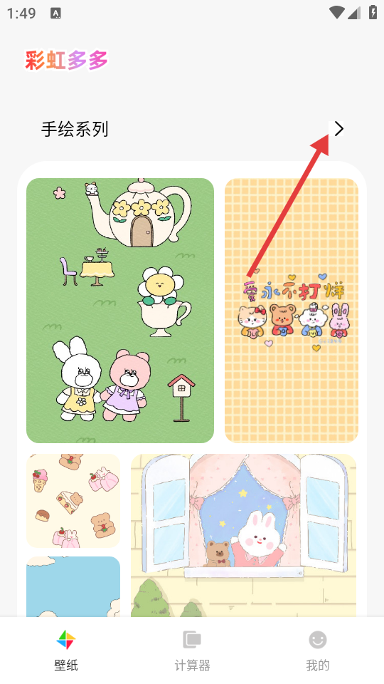 2、在主界面,点击手绘系列右侧的箭头,进入手绘系列壁纸列表页面。