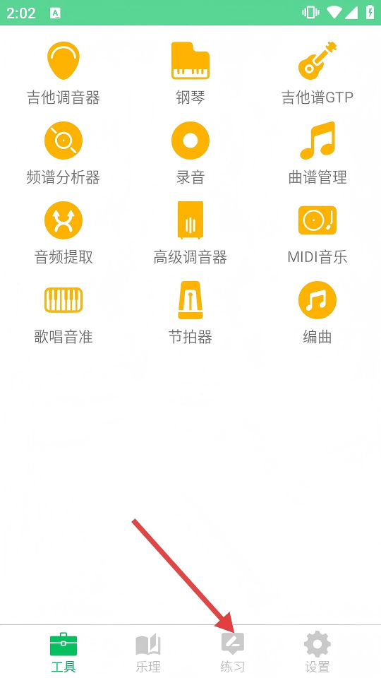1、点击底部【练习】,进入练习页面,可查看五线谱练习、音程练习等多种乐理练习选项。