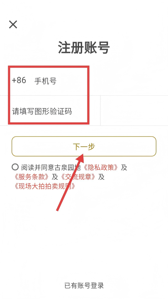 4、在注册页面填写【手机号】和【图形验证码】,勾选同意相关协议后点击【下一步】,按提示完成账号注册操作。