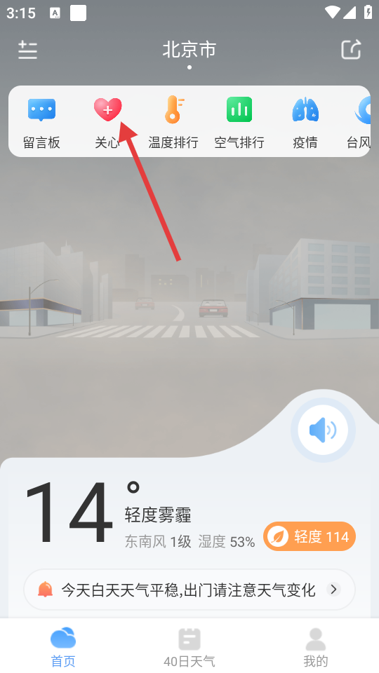 2、在主界面,点击【关心】选项,进入“我的关心”页面。