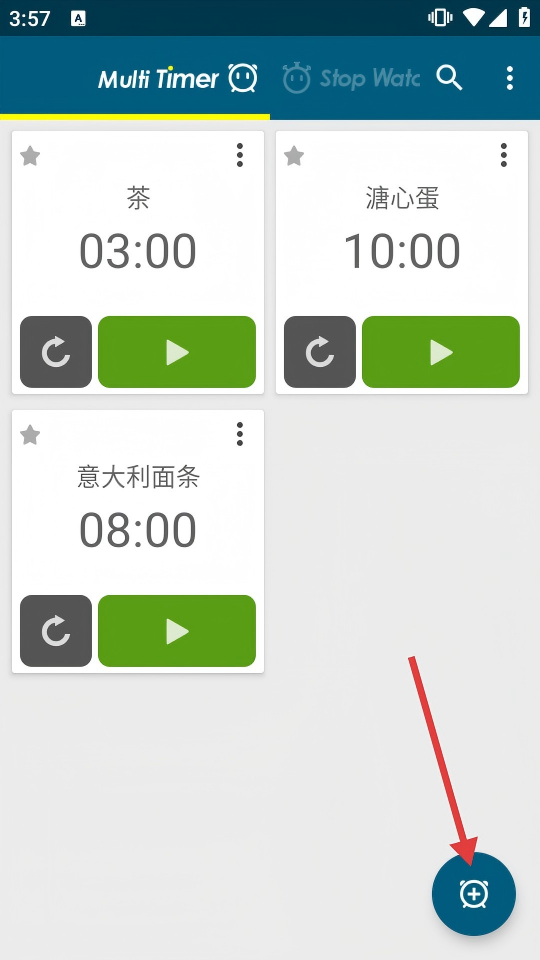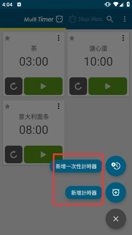 2、在主界面点击右下角加号按钮,展开新增计时器选项。