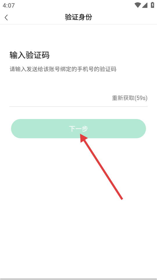 4、在验证身份页面,输入账号绑定手机号的验证码后,点击【下一步】,即可完成账号注销操作。