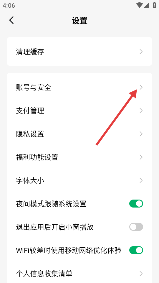 2、在设置页面中,点击【账号与安全】,进入账号与安全页面。