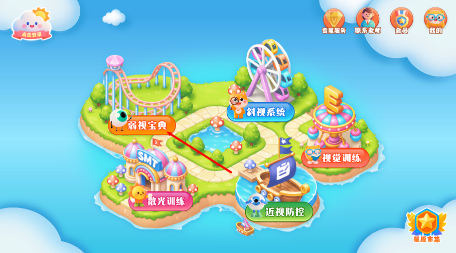 1、进入应用后,在首页界面中找到并点击“弱视训练”板块,可进入专门针对弱视康复的训练专区。
