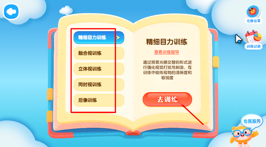 1、训练项目多样,涵盖调节训练、集合训练、视敏度训练等内容,可根据不同视觉状况选择合适项目进行锻炼。