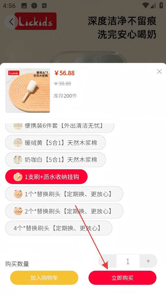 4、在规格选择界面,选好商品规格及购买数量后,点击【立即购买】完成购买操作。