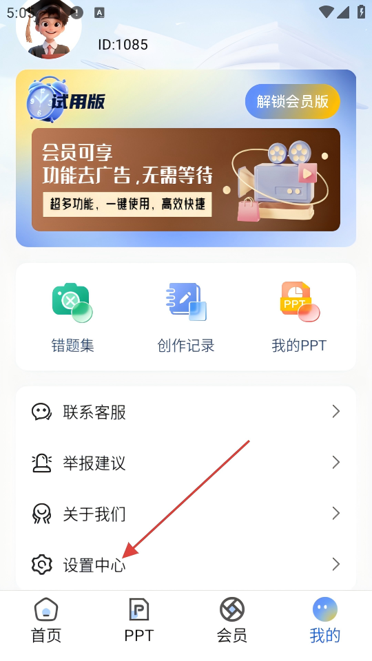 2、在【我的】页面,找到并点击【设置中心】选项,进入设置界面。
