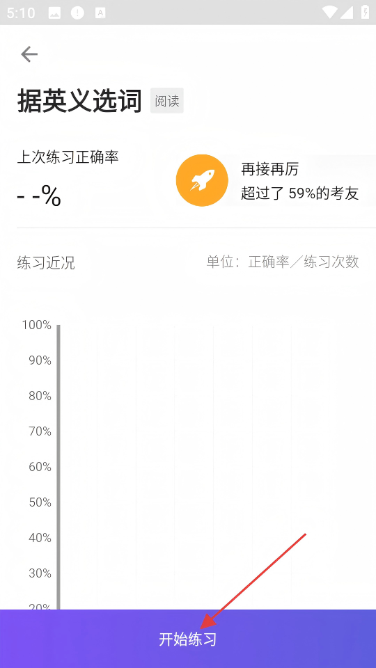 2、在【据英义选词】页面,点击底部【开始练习】按钮,进入出词规则说明界面。