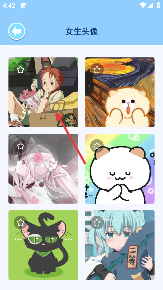3、在女生头像列表中选择心仪的头像,进入查看头像详情页。
