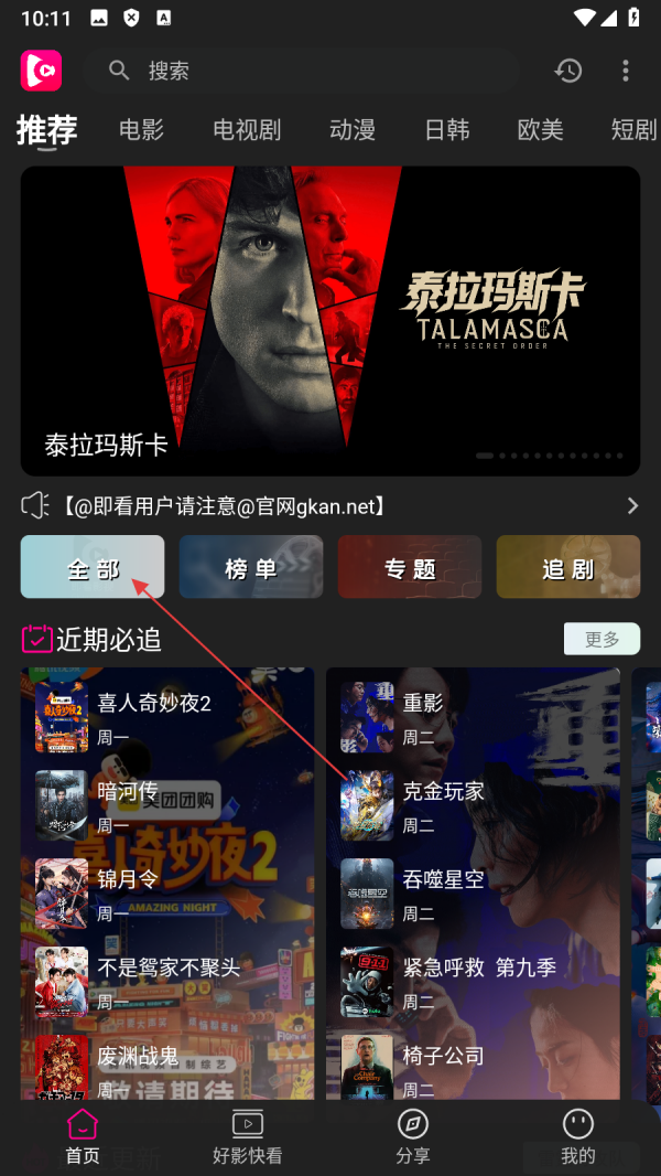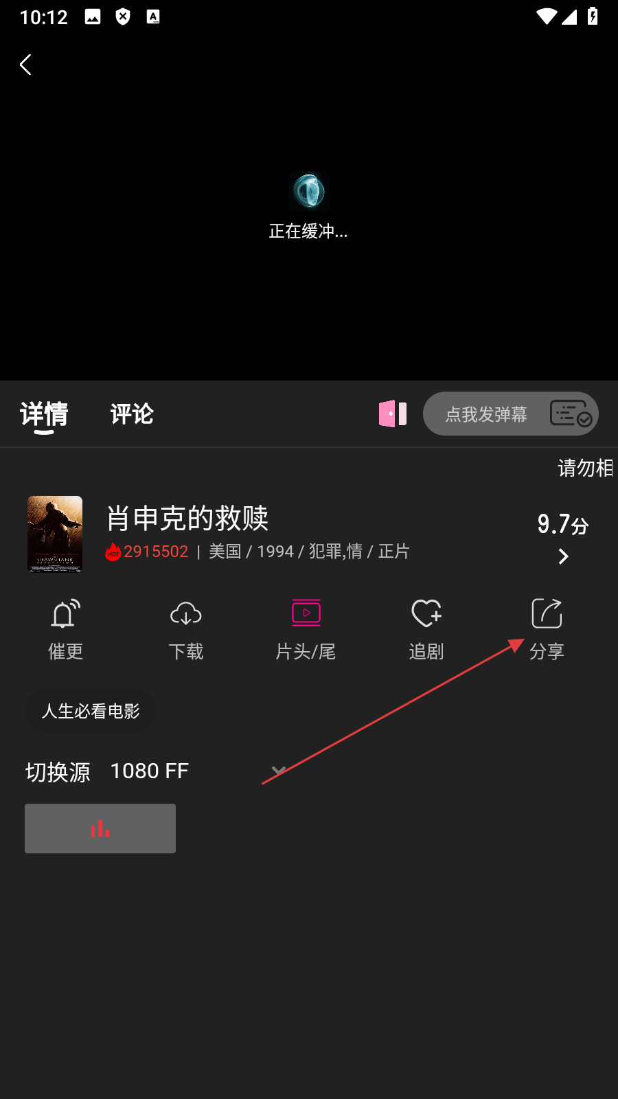3、在影片播放页面,点击【分享】,进入分享选择页面。