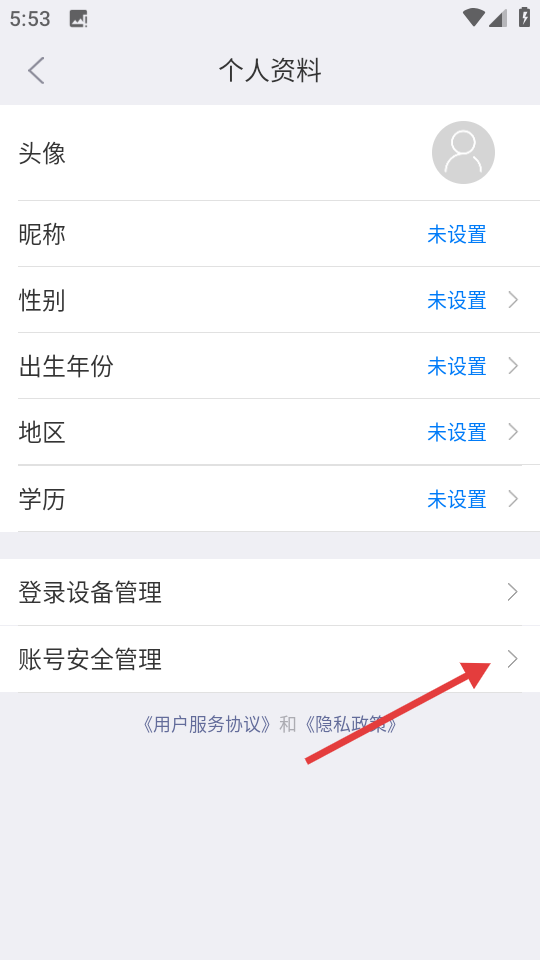 3、在个人资料页,点击【账号安全管理】,进入账号安全管理界面。