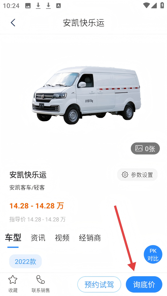 4、在【安凯快乐运】详情页,点击【询底价】可了解该车价格详情。