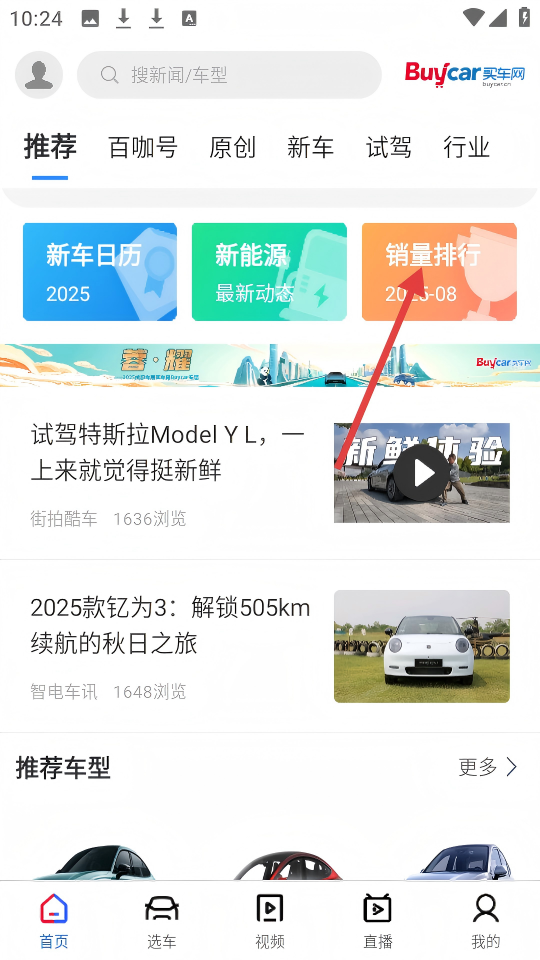 1、在首页点击【销量排行】按钮,可查看车辆销量情况。