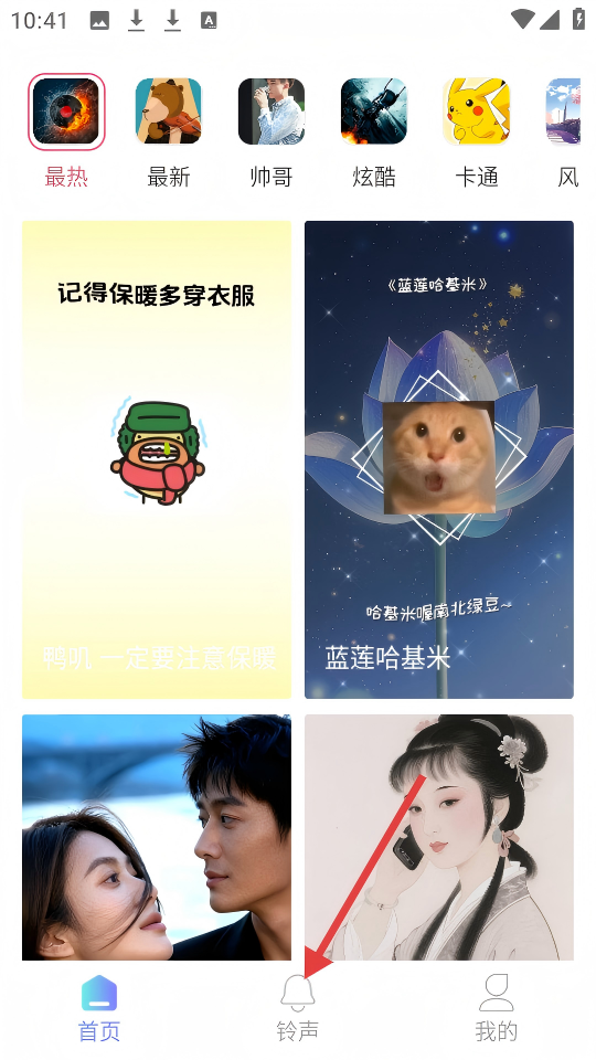 1、点击底部【铃声】,可进入有【最热】【最新】等分类的铃声选择页面。