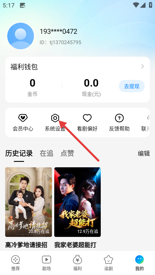 1、在“我的”页面,点击【系统设置】,进入系统设置界面。