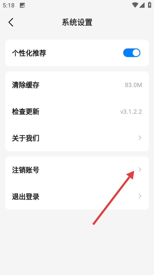 2、在系统设置页面,点击【注销账号】,进入注销须知页面。
