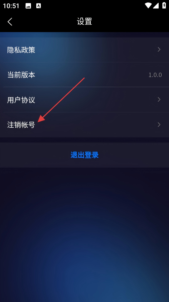 3、在【设置】页面,点击【注销帐号】选项,触发注销提示弹窗。