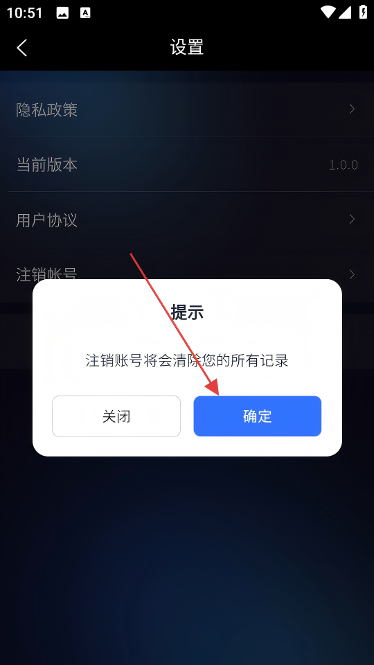 4、在【提示】弹窗中,确认要注销账号可点击【确定】按钮,注销后所有记录将被清除。