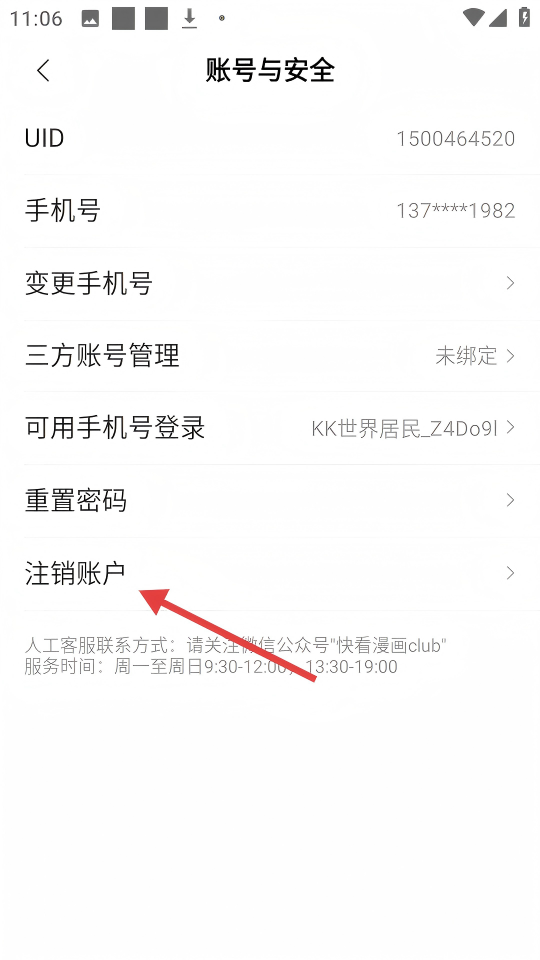 4、在账号与安全页面,点击【注销账户】选项可进行账户注销操作。