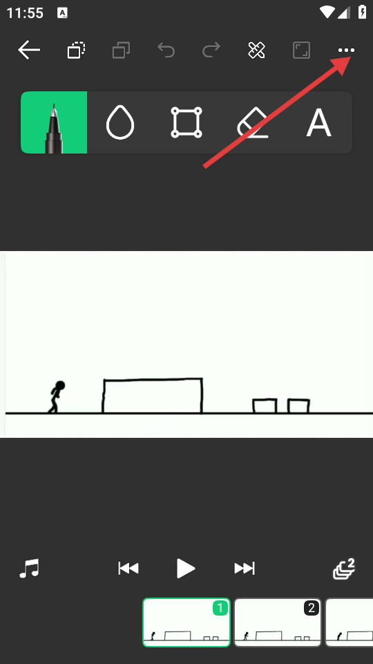 2、在动画编辑界面中,点击右上角三点图标,展开功能菜单。