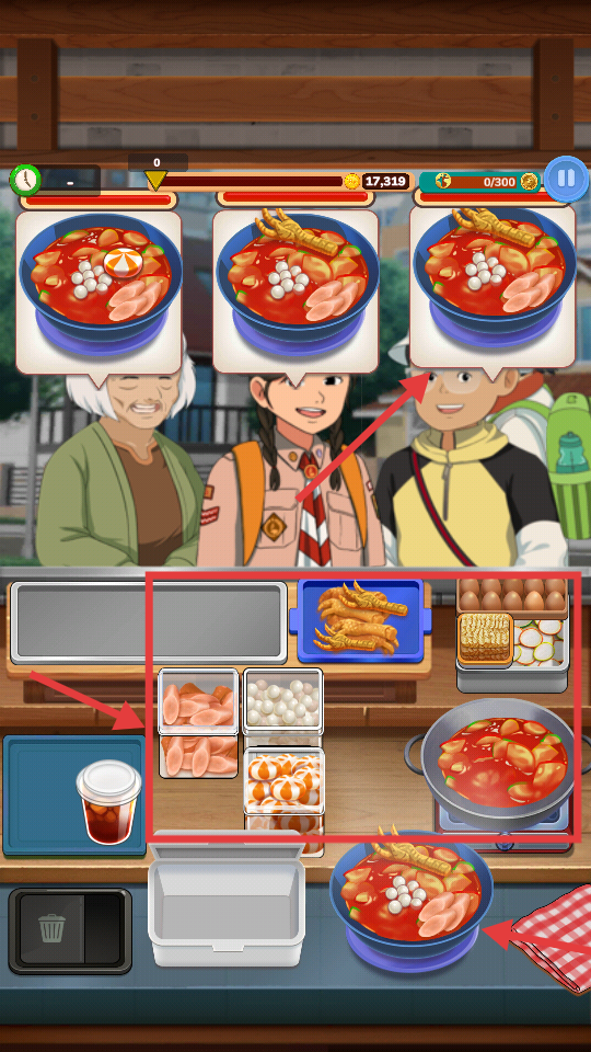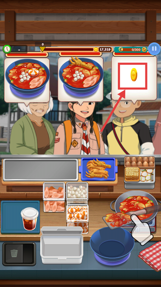 3、成功给顾客提供美食后,会获得金币奖励,用这些金币可升级店铺或解锁新食材。