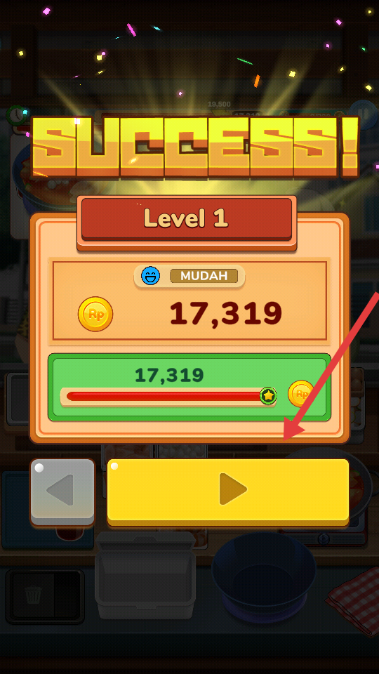 4、完成“Level1”后,界面显示【SUCCESS!】,点击黄色箭头按钮,继续挑战下一关。