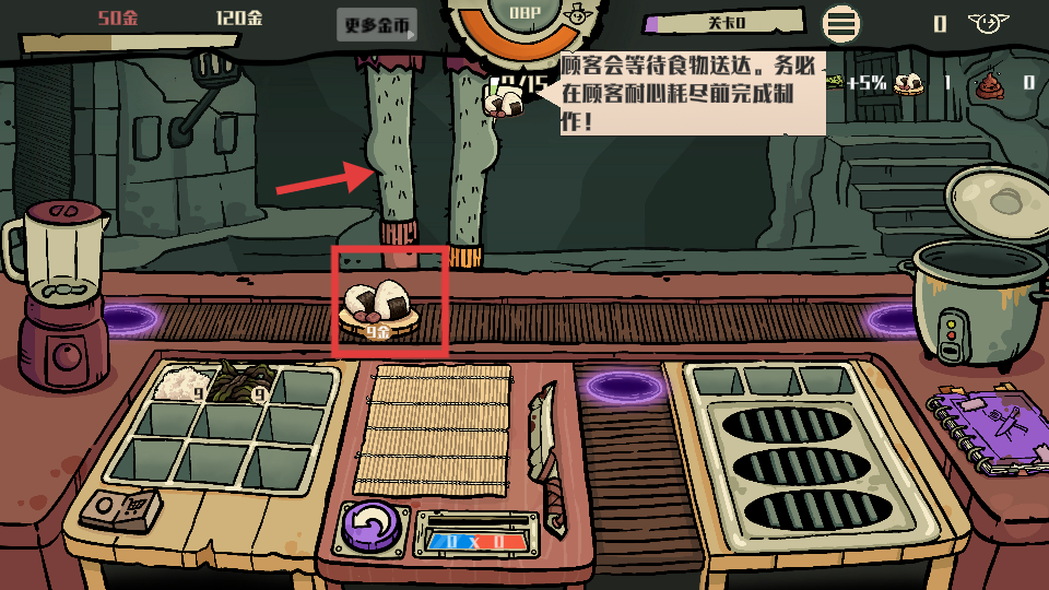 3、关注顾客耐心值,在其耐心耗尽前完成食物制作并送达,保证顾客满意。