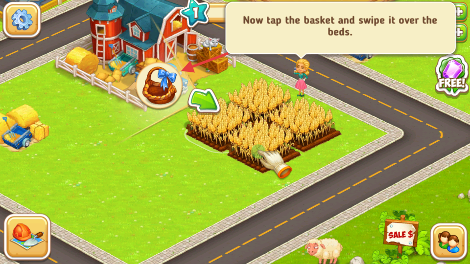 1、点击篮子,在农田区域滑动,完成农作物的收割操作。