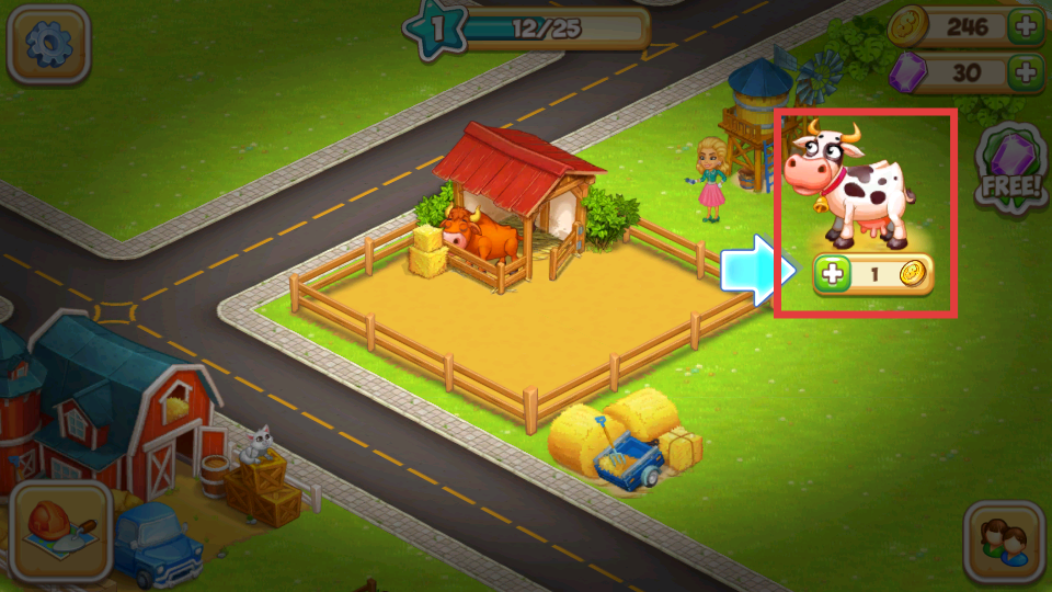 3、花费金币添加动物(如奶牛),扩充农场的养殖规模。