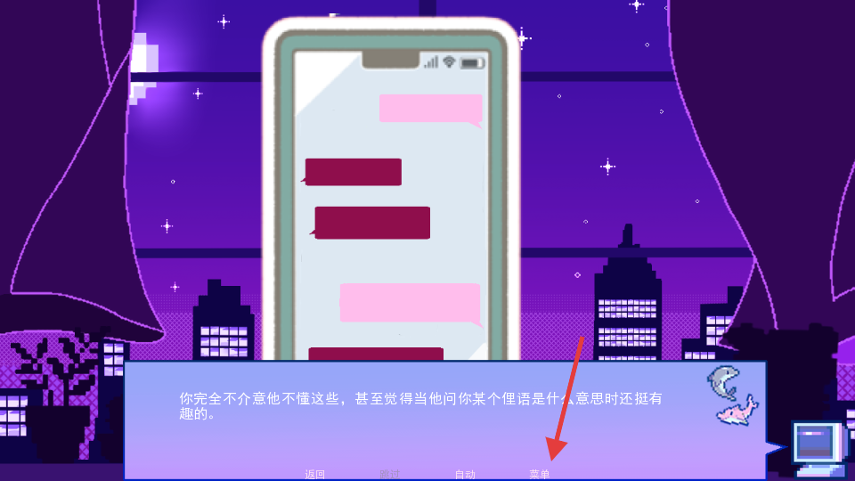 3、阅读剧情文本时,可点击界面下方功能按钮,如【菜单】。