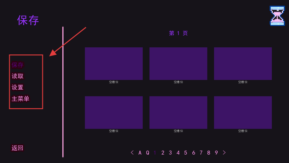4、查看或调整游戏相关设置,若想保存游戏进度,点击【菜单】后选择【保存】,在保存界面选择空槽位进行保存。