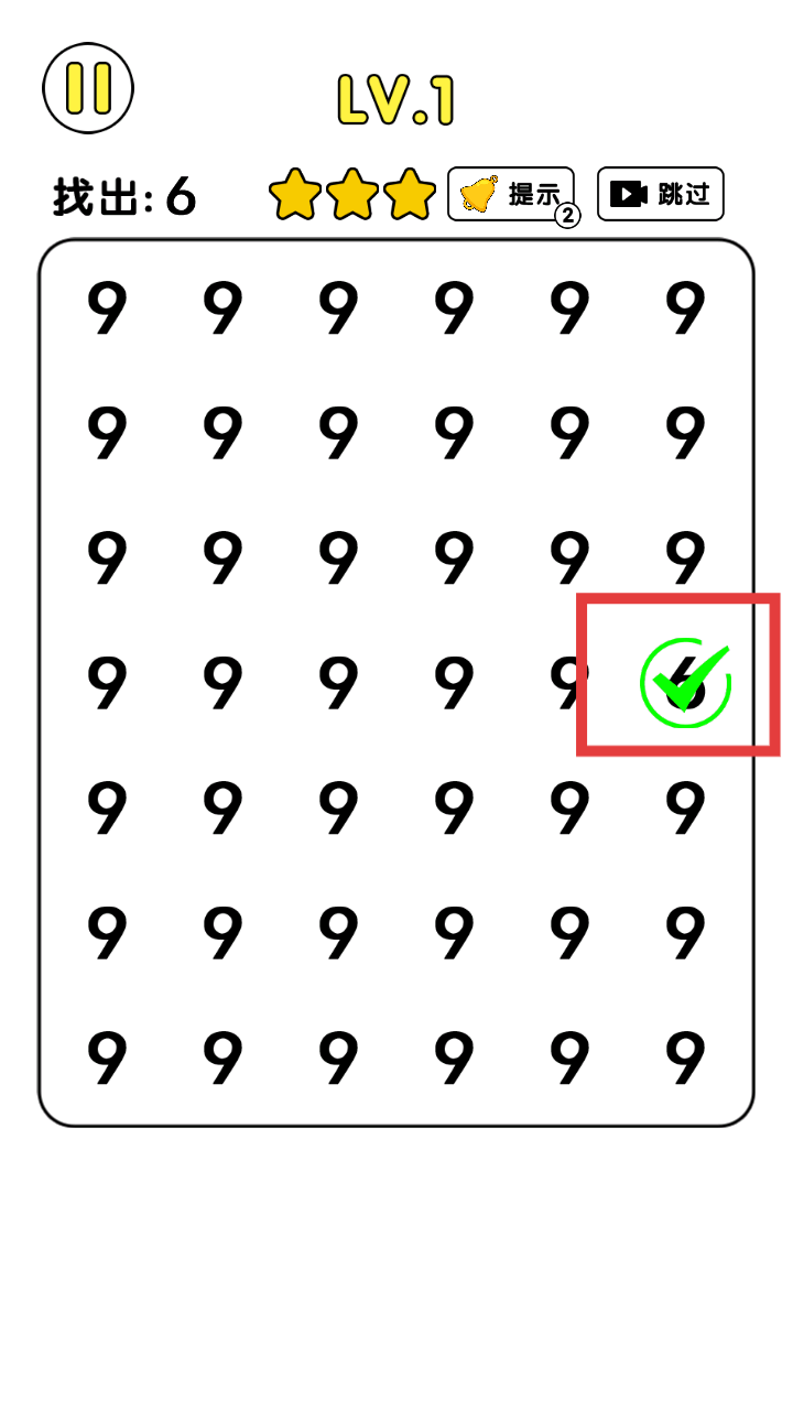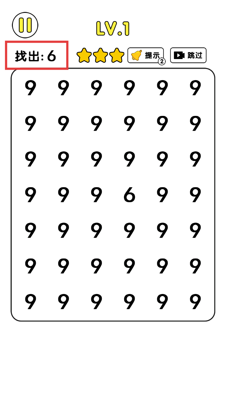 3、在LV.1关卡中,寻找数字“6”,目标是找出6个。