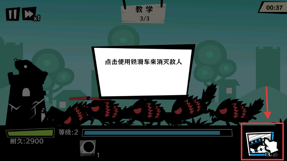 4、敌人成群时点击铁滑车图标,使用该技能快速消灭面前的多只敌人。