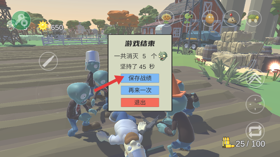 4、游戏结束后点击【保存战绩】,记录游戏成果。